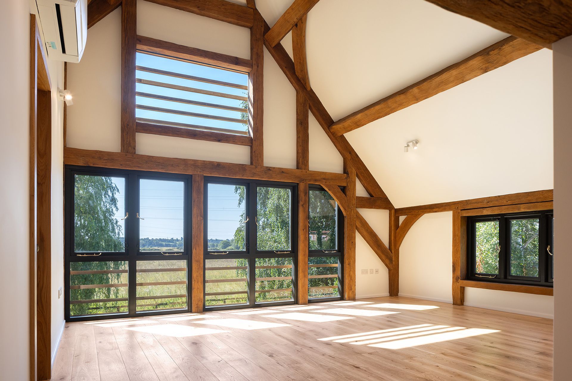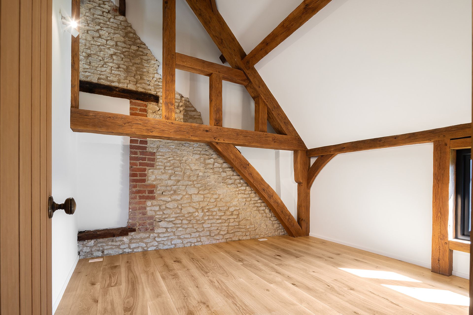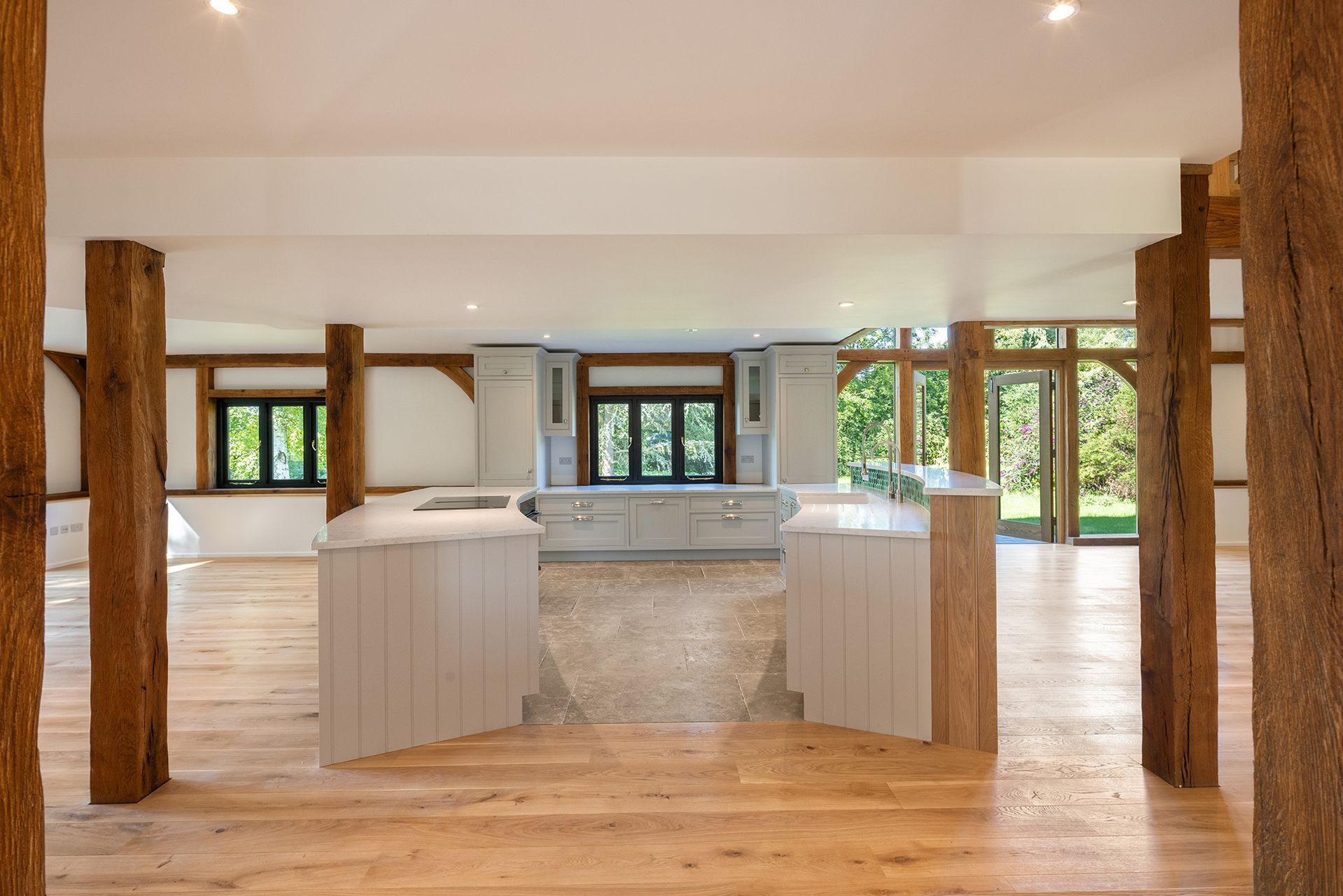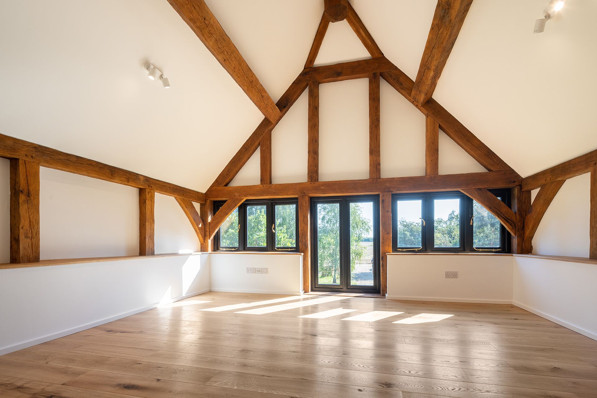 The oak frame was entrusted to the talented craftsmen at The Green Oak Building Company. As you will see from the photos, the result is a spectacular recreation of a 16th century barn, using traditional tools and jointing techniques. Look closely at the detailed images and you will see that each individual oak member throughout the building has been painstakingly hand hewn (a centuries old method of cutting and shaping timber manually). A true masterpiece of heritage conservation, coupled with modern building standards and sustainability, resulting in a beautiful home to be enjoyed and cherished for centuries to come.